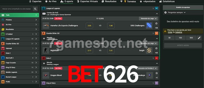 O bet626 oferece uma grande seleção de opções de apostas em e-sports com probabilidades competitivas